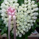 A stunning, elegant all rose Standing Heart tribute. This touching tribute is appropriate for funeral home services.