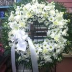 This elegant all white standing wreath includes daisies, lilies, spider mums, and more! This is a showy, elegant standing wreath that is handcrafted and designed with love and sympathy.
