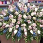 A stunning, casket spray full of beautiful multi-colored roses. Elegant, sophisticated, and handcrafted and designed with love and sympathy.