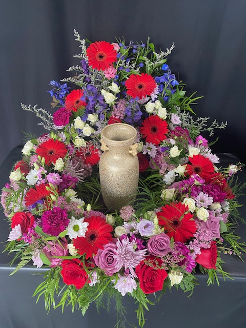 Hand-crafted and designed with fresh blooms and fresh greenery.