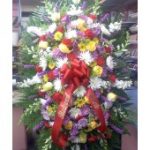 A beautiful mix of fresh blooms handcrafted and designed on a standing easel. Appropriate for funeral home services.